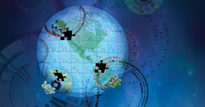 image: Artistic interpretation of how microbial genome sequences from the GEM catalog can help fill in gaps of knowledge about the microbes that play key roles in the Earth's microbiomes. This image complements a public repository of 52,515 microbial draft genomes generated from environmental samples around the world, expanding the known diversity of bacteria and archaea by 44%, is now available and described November 9, 2020 in Nature Biotechnology. Work on this catalog of genomes from Earth's microbiomes catalog results from a collaboration involving more than 200 scientists, researchers at the DOE Joint Genome Institute (JGI) and the DOE Systems Biology Knowledgebase (KBase).