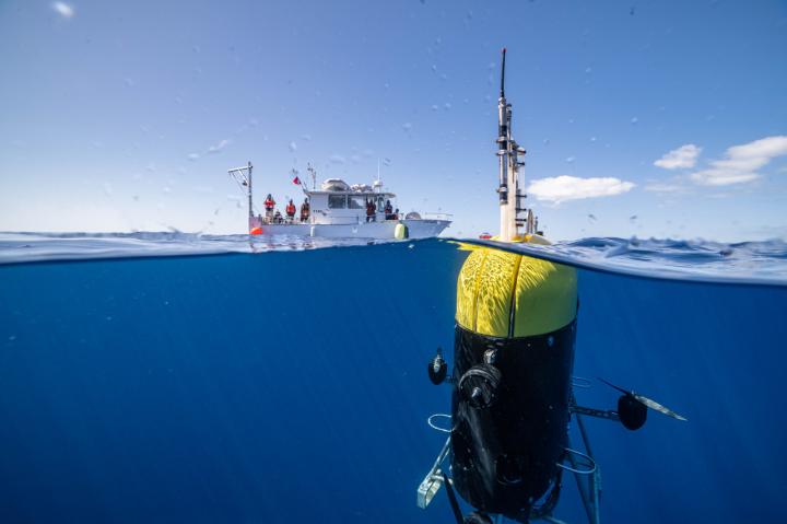 image: Mesobot, an underwater robot capable of tracking and recording high-resolution images of slow-moving and fragile zooplankton, gelatinous animals, and particles, is providing researchers with deeper insight into the vast mid-ocean region known as the twilight zone. Photo taken off the coast of Bermuda, March 2021