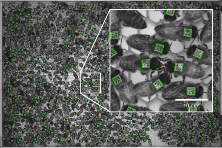 That study, done a few years ago, involved high-resolution imaging of barcode-fitted honey bees, with algorithms detecting interaction events by mapping the position and orientation of the bees in the images. In those studies, researchers focused on trophallaxis -- the act of mouth-to-mouth liquid food transfer -- when measuring the social interactions between honey bees. Trophallaxis is used not only for feeding but for communication, making it a model system for studying social interactions.