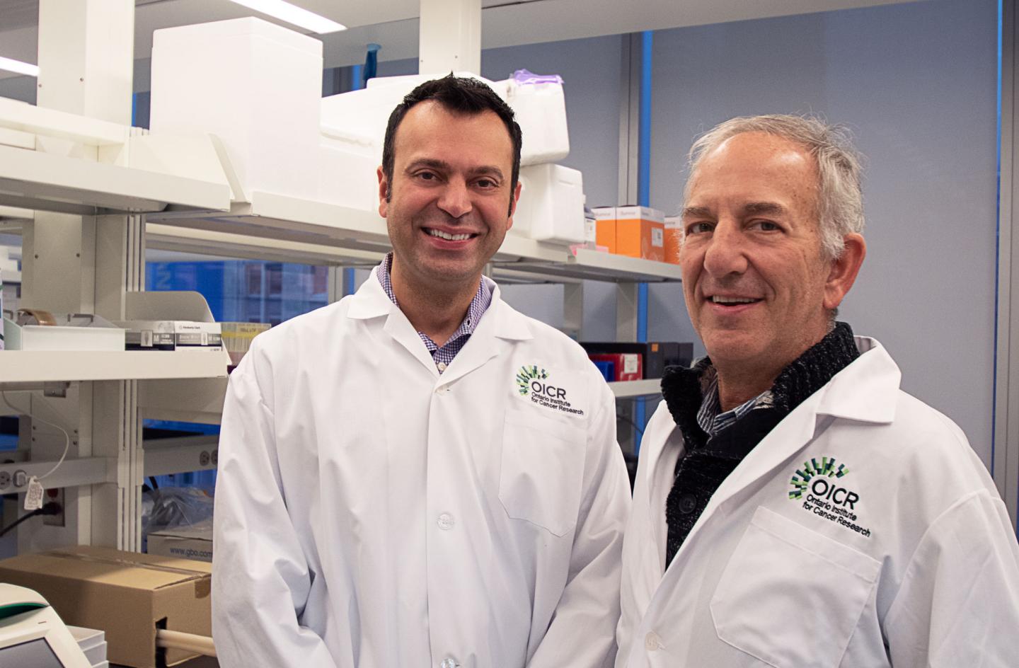 image: Drs. Faiyaz Notta and Steven Gallinger in a laboratory.