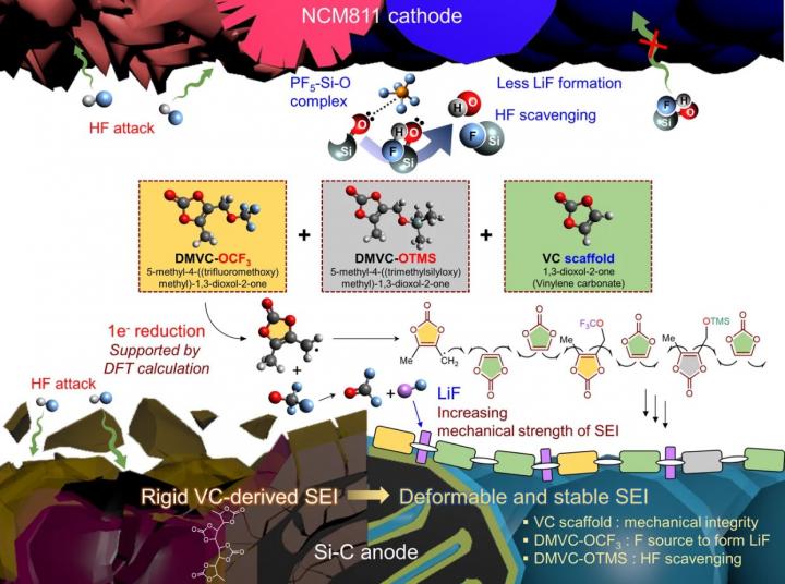 In the study, the research team demonstrated that the creation of a stable and spatially deformable solid electrolyte interphase (SEI) on a high-capacity Si-C anode could tolerate the inevitable volume changes induced by the lithiation of Si and could enable a long lifespan and fast chargeability of high-energy-density LIBs.
