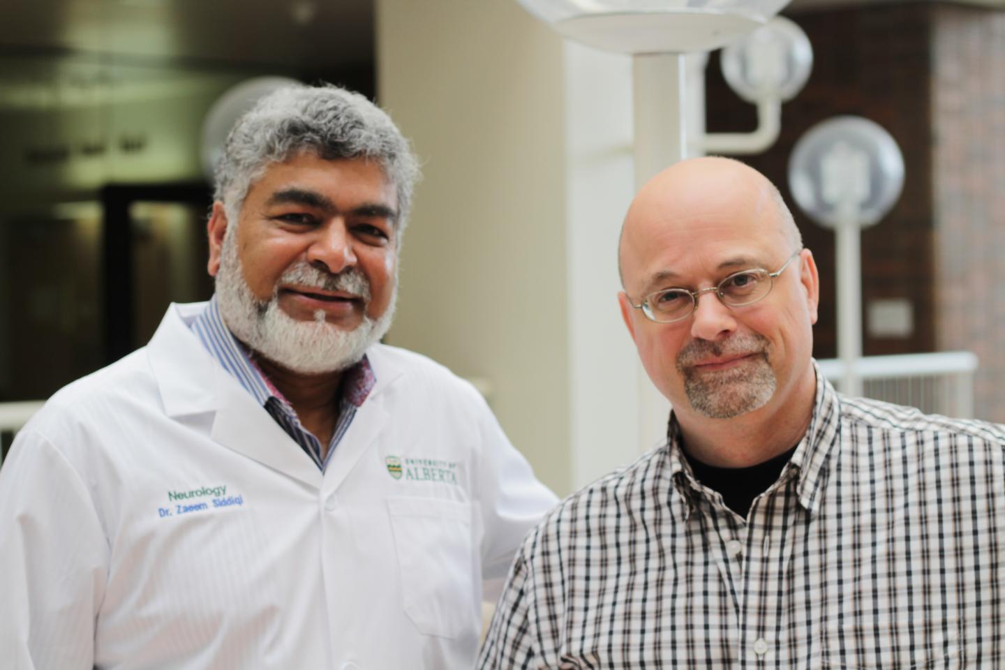 image: U of A researchers Zaeem Siddiqi (left) and Derrick Blackmore pinpointed 12 metabolic byproducts that only appear in people with myasthenia gravis -- a biological marker that will improve diagnosis and allow for personalized treatments for the rare autoimmune disease.