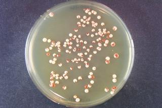 image: Yeast colonies with the prion in a shape with a larger nucleation seed (white) than can be cured (red).