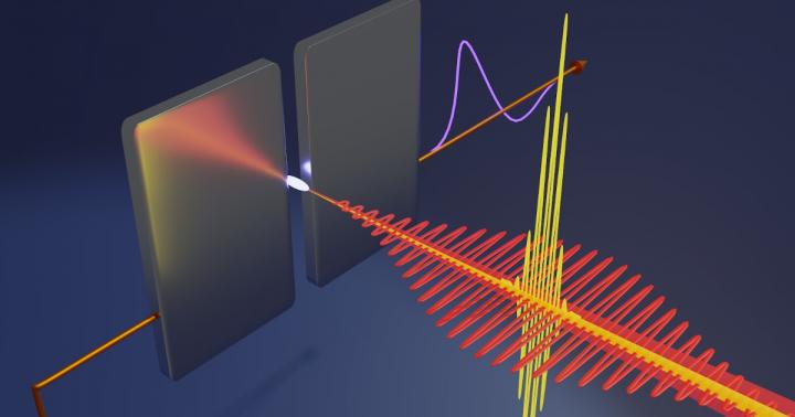 image: The detection of currents induced in ambient air plasma by a pair of cross-polarized laser pulses is used to sample the electric field of light waves.