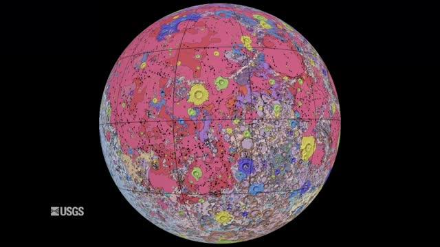 video: This animation shows a rotating globe of the new Unified Geologic Map of the Moon with shaded topography from the Lunar Orbiter Laser Altimeter (LOLA). This geologic map is a synthesis of six Apollo-era regional geologic maps, updated based on data from recent satellite missions. It will serve as a reference for lunar science and future human missions to the Moon.
