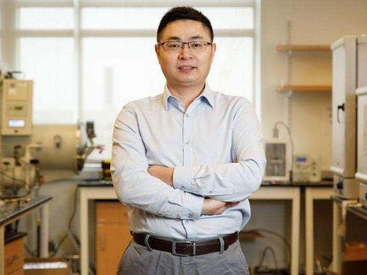 image: Cunjiang Yu, Bill D. Cook Associate Professor of Mechanical Engineering at the University of Houston, is sing the Ancient art of Kirigami to make an eyeball-like camera.