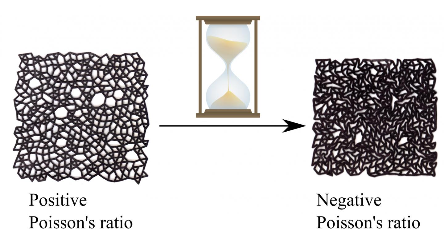 Using this insight, the team then took a Styrofoam-like material and added "memory" by allowing the material to age under specified stresses. To make the material auxetic they applied a constant pressure to the material and let it age naturally. "With the whole thing under pressure, it adjusted itself. It turned itself from a normal material into a mechanical metamaterial," says Liu.