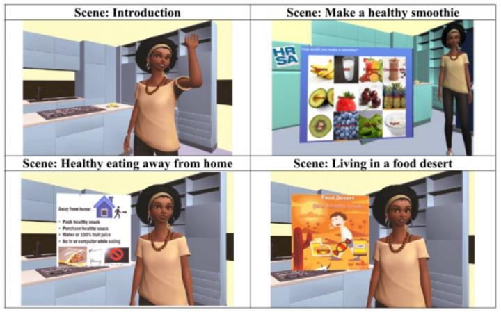 Researchers introduced 15 adult-child dyads to a virtual avatar-based coaching program that incorporated age-specific information on growth; physical, social, and emotional development; healthy lifestyles; common nutrition concerns; and interview questions around eating behaviors and food resources and counseling.