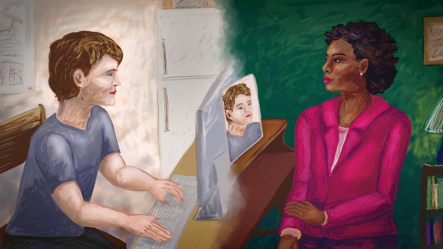 image: The expansion of telepsychiatry may outlast the COVID-19 pandemic that caused it. When the stay-at-home order took effect in West Virginia, James Berry--a clinician with the WVU School of Medicine--was part of the team that moved the Chestnut Ridge Center's therapy sessions online. Just 10% to 15% of patients had connectivity problems. That's fewer than clinicians expected. And--anecdotally--clinicians found that many patients were more forthcoming during virtual sessions than in-person ones.