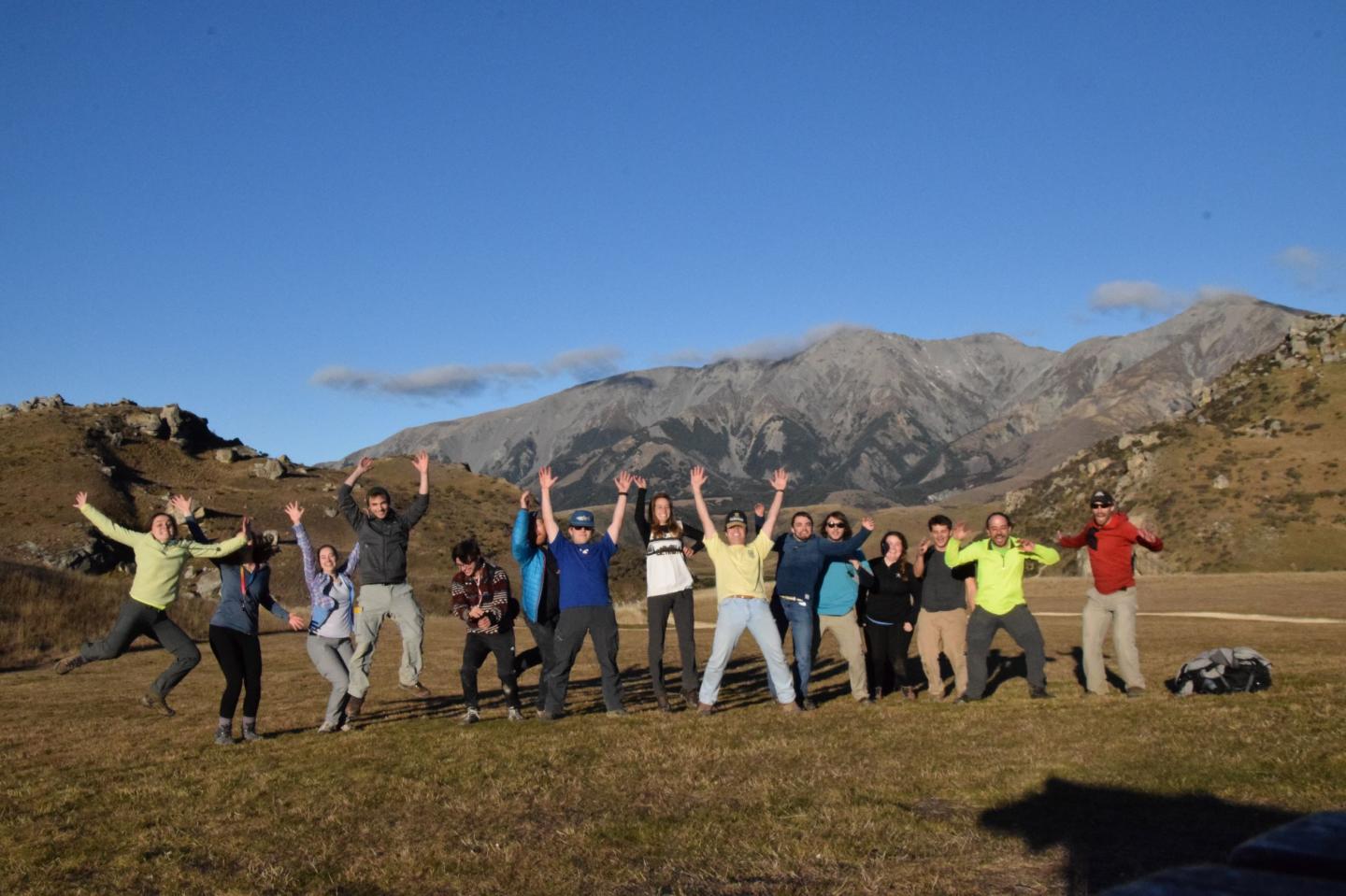 image: Guilherme Gualda, second from right, led students on a Maymester trip to the Taupo Volcanic Zone in New Zealand.