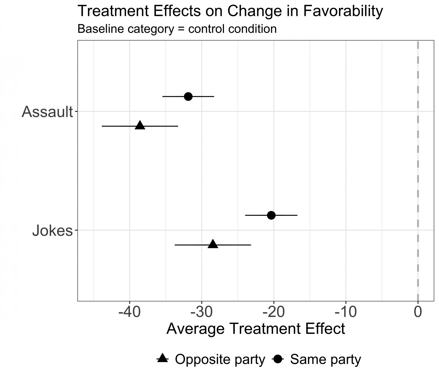The impact of sexual assault allegations and sexist jokes on changes in favorability and electoral support was much larger for women than men. For women, electoral support decreased by 34 percent for assault allegations as compared to 23 percent for men.