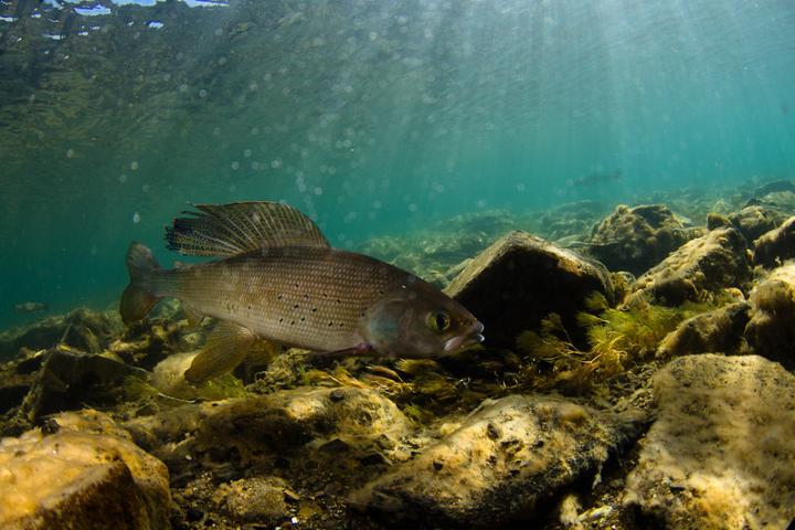 image: Arctic grayling in ephemerally warm lake outlet, Little Togiak River, Alaska.