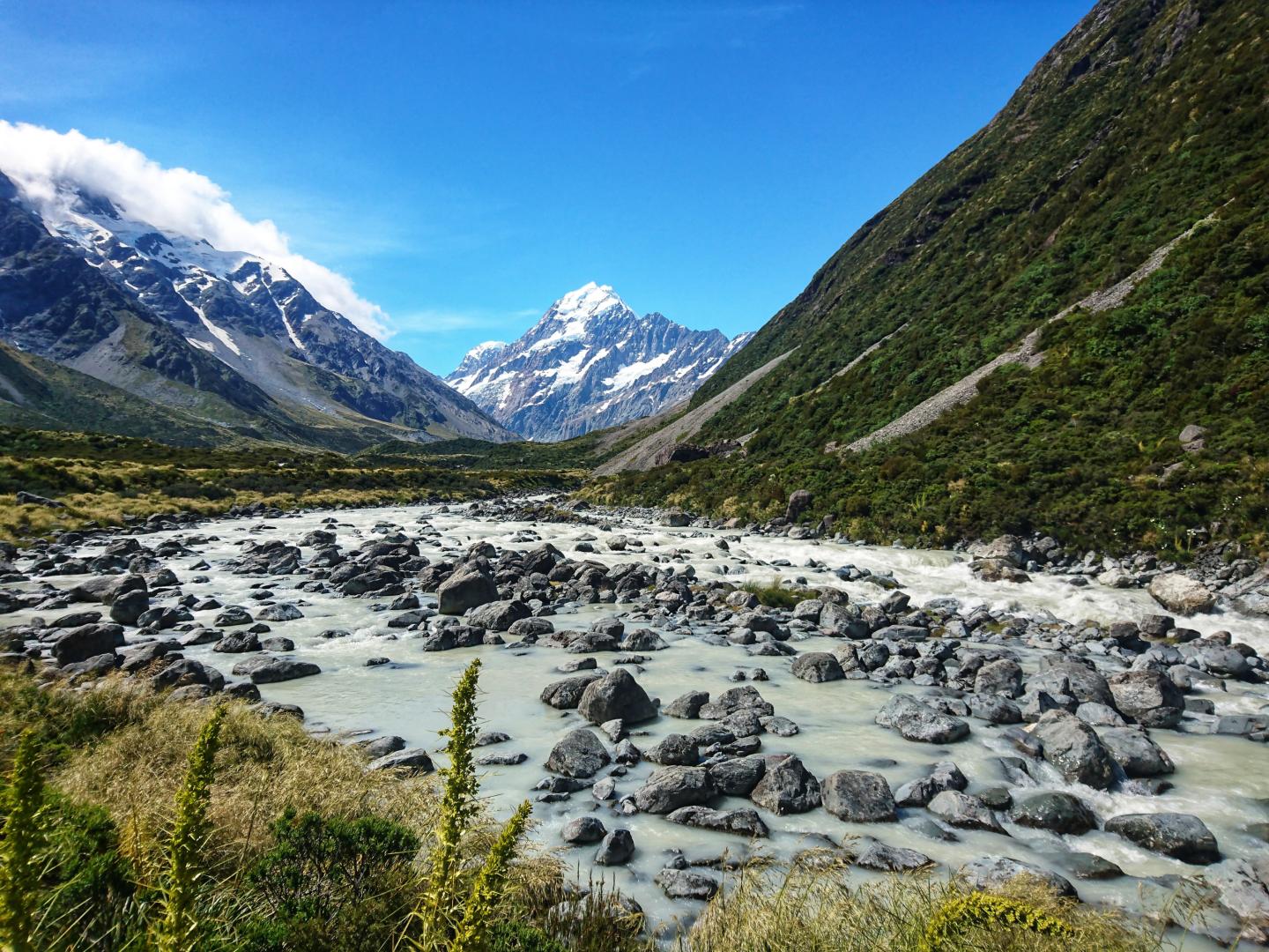 image: The Hooker River in Aoraki Mount Cook National Park, Aotearoa New Zealand