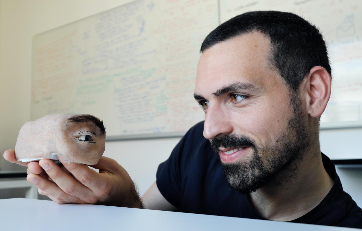 With 'Eyecam' they now present the prototype of a webcam that not only looks like a human eye, but imitates its movements realistically. "The goal of our project is not to develop a 'better' design for cameras, but to spark a discussion. We want to draw attention to the fact that we are surrounded by sensing devices every day. That raises the question of how that affects us," says Marc Teyssier. In 2020, the French scientist completed his doctorate on the topic of anthropomorphic design in Paris. Now he is a postdoctoral researcher in the Human-Computer Interaction Lab at Saarland University in Germany.