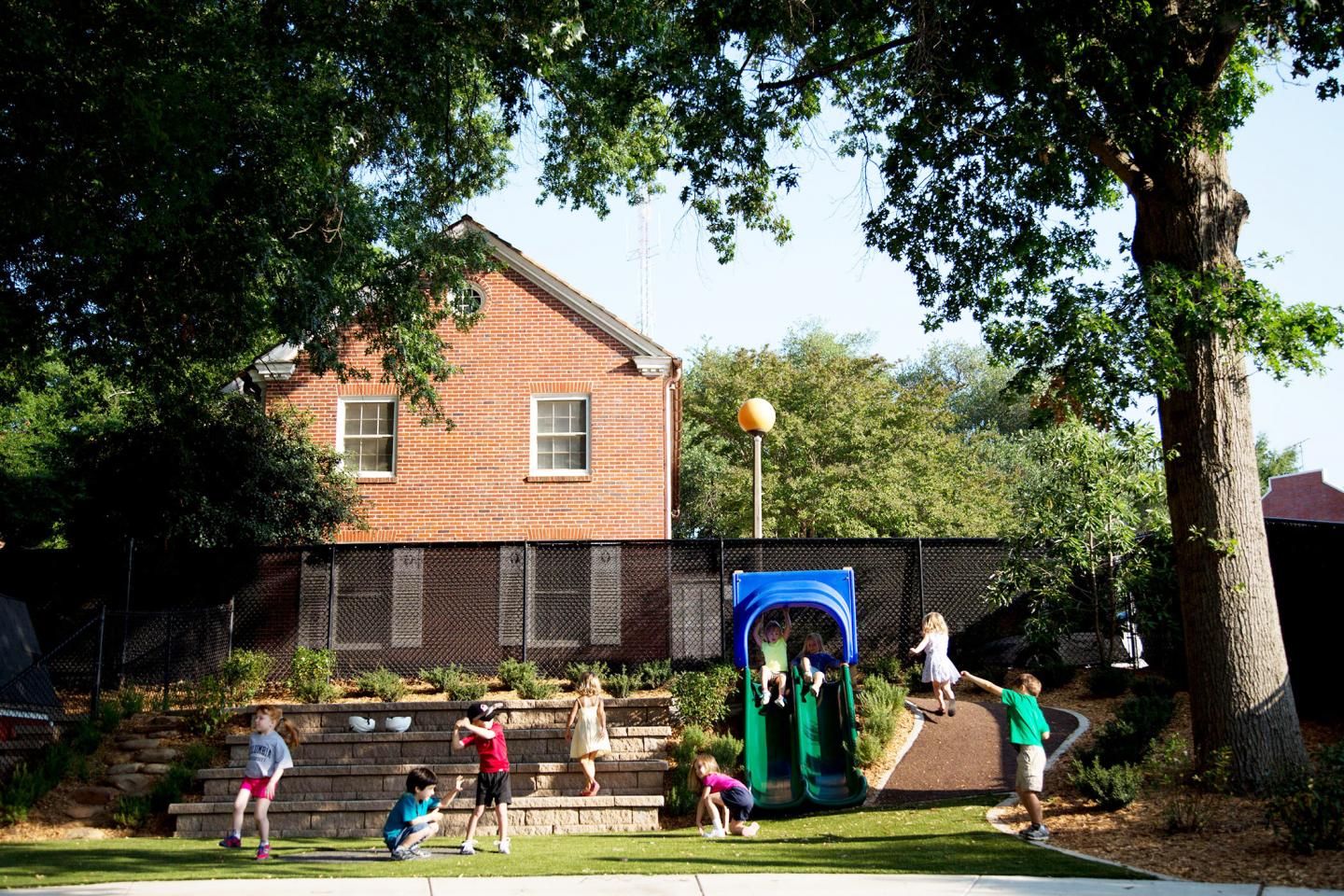 image: Children get active outside UGA's McPhaul Child Development Lab.