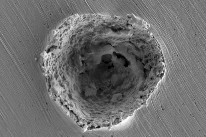 The team used the data from these experiments to develop a general model to predict the response of particles of a given size travelling at a given speed, says David Veysset, a staff researcher at MIT and co-author of the paper. So far, he says, they have used pure metals, but the team plans further tests using alloys and other materials. They also intend to test impacts at a variety of angles other than the straight-down impacts tested so far. "We can extend this to every situation where erosion is important," he says. The aim is to develop "one function that can tell us whether erosion will happen or not."