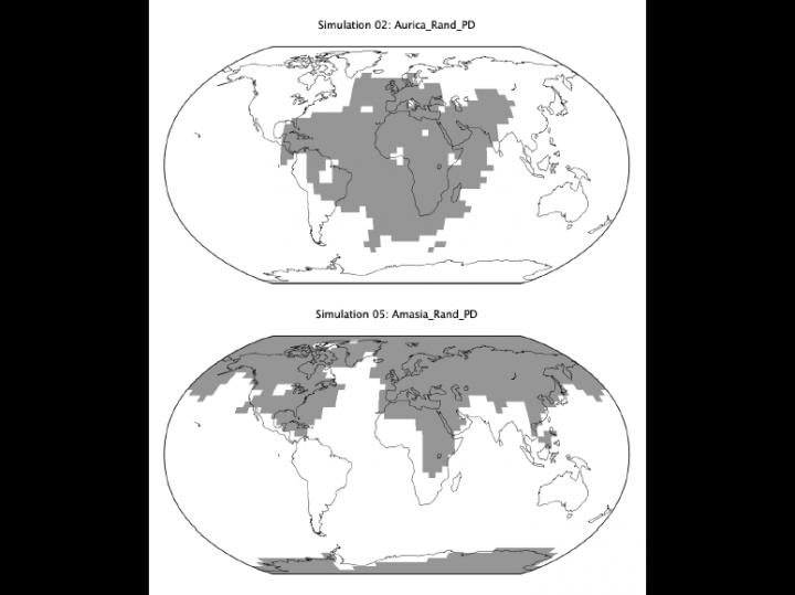 The simulations showed that temperatures were right for liquid water to exist on about 60% of Amasia's land, as opposed to 99.8% of Aurica's -- a finding that could inform the search for life on other planets. One of the main factors that astronomers look for when scoping out potentially habitable worlds is whether or not liquid water could survive on the planet's surface. When modeling these other worlds, they tend to simulate planets that are either completely covered in oceans, or else whose terrain looks like that of modern-day Earth. The new study, however, shows that it's important to consider land mass arrangements while estimating whether temperatures fall in the 'habitable' zone between freezing and boiling.