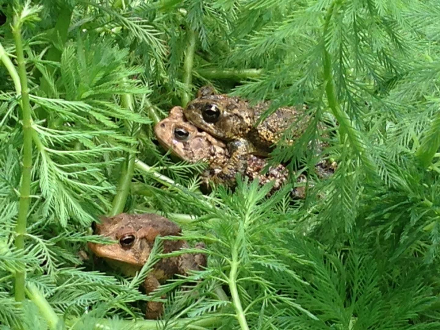 image: Adult southern toads in amplexus (breeding) at a study site.
