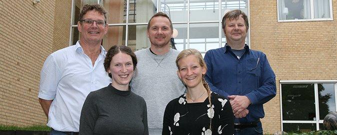 image: The research was carried out in a collaboration between researchers from Aarhus University and Aarhus University Hospital: In the front row are the two first authors of the scientific article in EMBO Reports (from left): Louise Dalskov and Michelle Møhlenberg. Back (from left): Hans Jürgen Hoffmann, Christian Kanstrup Holm and Rune Hartmann. Photo: Lisbeth Heilesen.
