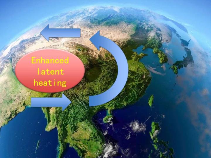 The team compared the global warming scenarios with the present-day climate in 30 coupled models from phase 5 of the Coupled Model Intercomparison Project (CMIP5). Indeed, the latent heating over TP and its southern slope is substantially enhanced, due to the increased atmospheric water vapor content and enhanced local hydrological recycling. As confirmed by Linear Baroclinic Model, the enhanced latent heating over TP stimulates a cyclone anomaly around TP, enhancing the southerly wind in East Asia. In addition, the latent heating over TP also explains the inter-model spread of the projected changes in EASM circulation among CMIP5 models.