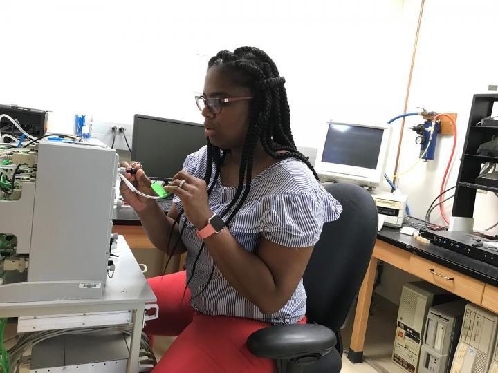 image: Patricka Williams-Simon, a doctoral fellow in biological sciences at MU who led the study, places fruit flies into a box to study how well they learn and remember. She and the team discovered some fruit flies learn better than others.
