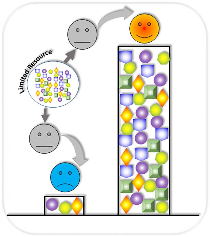 Tian's team devised a way to insert individual gene circuits into multiple host cells that work collectively. Each cell performs a specific function, eliminating the undesired competition for resources of any host cell. "Instead of dividing resources, each cell can perform 100 percent of its assigned workload," said Tian. "The host cells perform as a connected unit without depleting any one cell's resources - and each gene circuit becomes a winner."