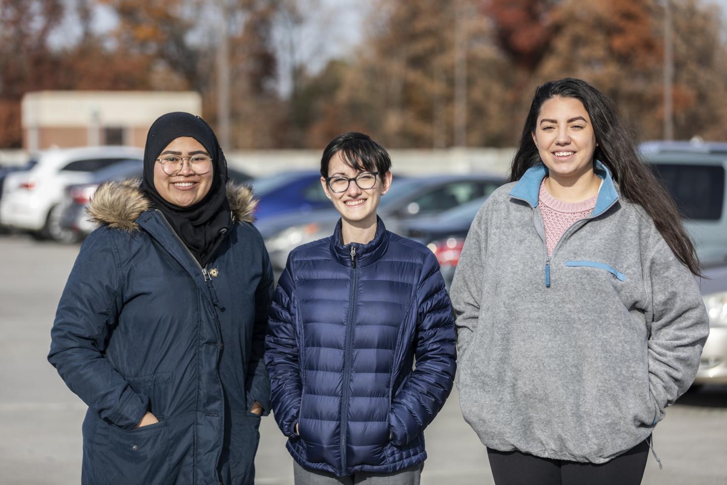 image: Krall and colleagues conducted the first study to use personal air pollution monitors with vehicle monitors to measure women's exposure to fine particulate matter air pollution (PM2.5), one pollutant emitted by traffic. From left to right: Nada Adibah, Dr. Jenna Krall, Gabriella Cuevas.