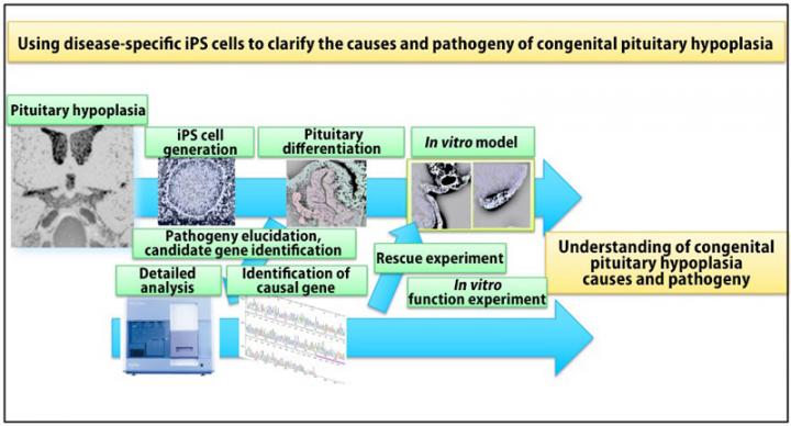 In recent years, iPS (induced pluripotent stem) cells have been utilized in the development of disease models, regenerative medicine, and drug discovery. In addition, a method using iPS cells to induce differentiation of both the pituitary and hypothalamus in vitro has been developed; however it had yet to be applied to pituitary disease modeling.
