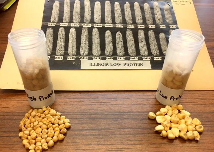 "One of the things that was noted as early as the 1930s was that the low-protein line stays greener longer than the high-protein line. It's really obvious," says Stephen Moose, professor in the Department of Crop Sciences at Illinois and co-author of the study.