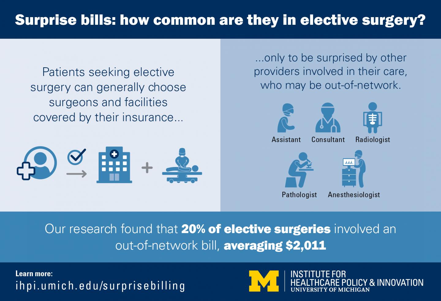 "Even if a patient takes care to choose an in-network surgeon, and an in-network hospital or surgery center, they have little to no control over the rest of the team involved in their care, and whether they take part in their insurance plan," says U-M surgery chair Justin Dimick, M.D., M.P.H., senior author of the new paper. "This study reveals the extent and size of the bills that these other providers can incur if they're not in-network."