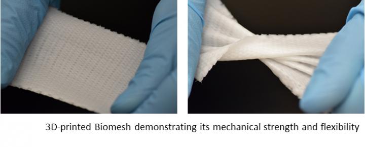 image: 3D-printed Biomesh demonstrating its mechanical strength and flexibility.
