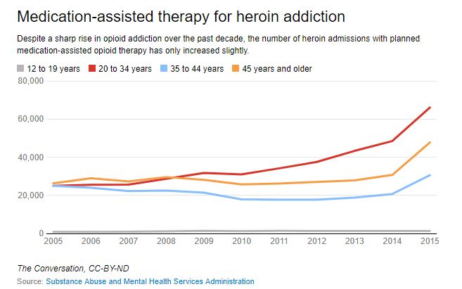 Unfortunately, many patients are unable to access these treatments. Despite a sharp rise in opioid addiction over the past decade, there has been only a slight increase in referrals for medication-assisted treatment in state-licensed drug treatment programs. Patients who are able to obtain treatment with buprenorphine must often visit private practice physicians who don’t accept commercial insurance or Medicaid.