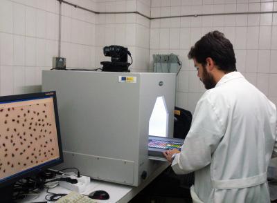 The method consists of inserting the fruit or seeds into a light controlled cabin. Computer imaging then identifies exact colour in accordance with International Commission on Illumination standards along with morphological characteristics such as length, width and sphericity.