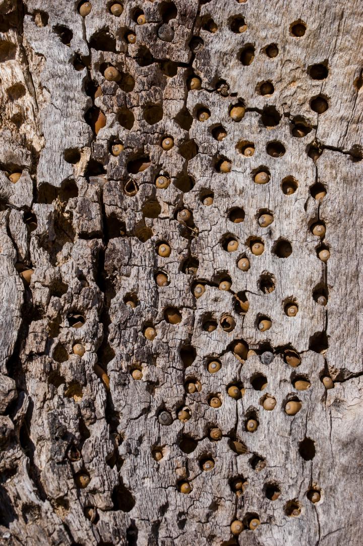Power struggles for co-breeding positions in oak trees with "granaries"--large acorn storage structures built by the birds consisting of acorns stuffed into thousands of individual holes in the bark--involve fighting coalitions formed by groups of non-breeding brothers or sisters from neighboring territories. The radio tag data showed that some birds return day after day and fight for ten hours at a time. "We didn't think it could be that long because they have to be away from their home territory," says Barve. "When do they eat? We still don't know."