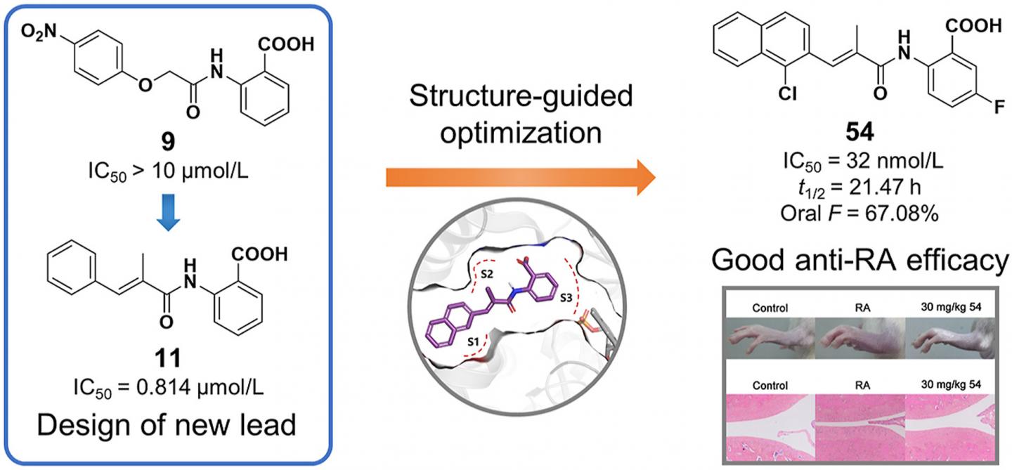 The most potent compound 54 also displayed favorable pharmacokinetic (PK) profiles and encouraging in vivo anti-arthritic effects in a dose-dependent manner.