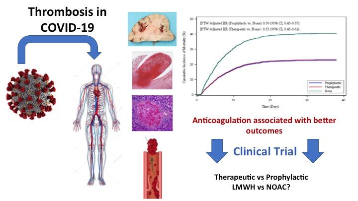 image: Thromboembolic disease is a complication of COVID-19. Prophylactic and therapeutic anticoagulation are associated with better outcomes in hospitalized patients with COVID-19. randomized controlled trials evaluating different AC regimens in COVID-19 are needed.
