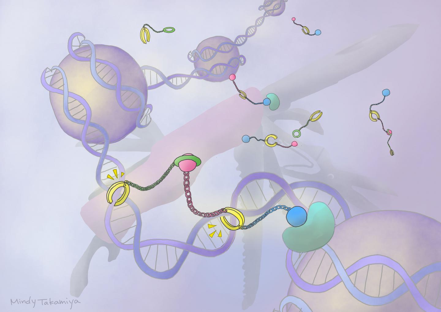 One such system involves combining a PIP with a 'host-guest assembly' (HoGu) that can strongly bind to DNA and act similarly to proteins, called transcription factors, that target and bind to specific genes to signal for them to turn on or off.