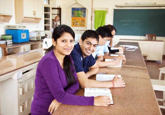 image: Group of Indian students learning in a classroom.
