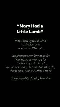 Pneumatic soft robots need a way to remember and maintain the positions of their moving parts. The researchers realized that if they could create a pneumatic logic "memory" for a soft robot, they could eliminate the electronic memory currently used for that purpose.