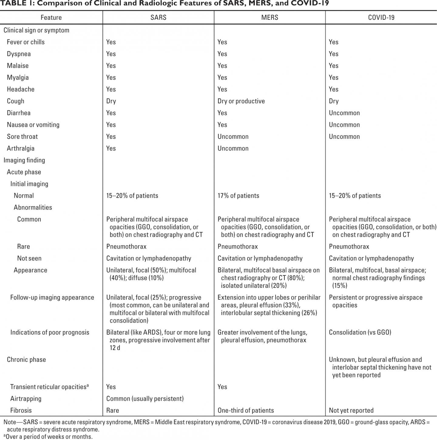 image: Note--SARS = severe acute respiratory syndrome, MERS = Middle East respiratory syndrome, COVID-19 = coronavirus disease 2019, GGO = ground-glass opacity, ARDS = acute respiratory distress syndrome.