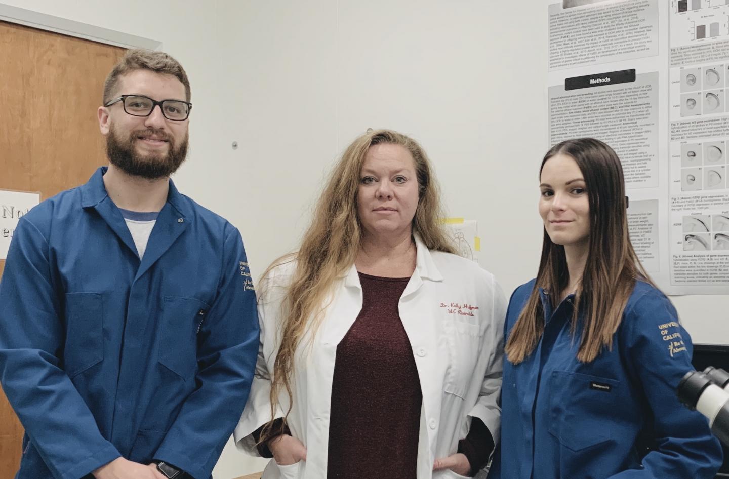 image: Photo shows, from left to right, Riley Bottom, Kelly Huffman, and Kathleen Conner.