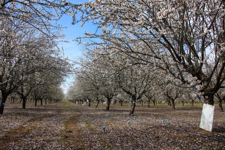 Over the last decade, however, the nut's surging prices havegiven rise to intensive almond tree plantations characterised bya high density of trees per hectare and the employment offertilisation and irrigation, yielding endless rows of white when the trees are in bloom. Knowing what the future of these plantations will be like in a country where the availability of water for irrigation is limited is one of the main tasks tackled by agronomic research.