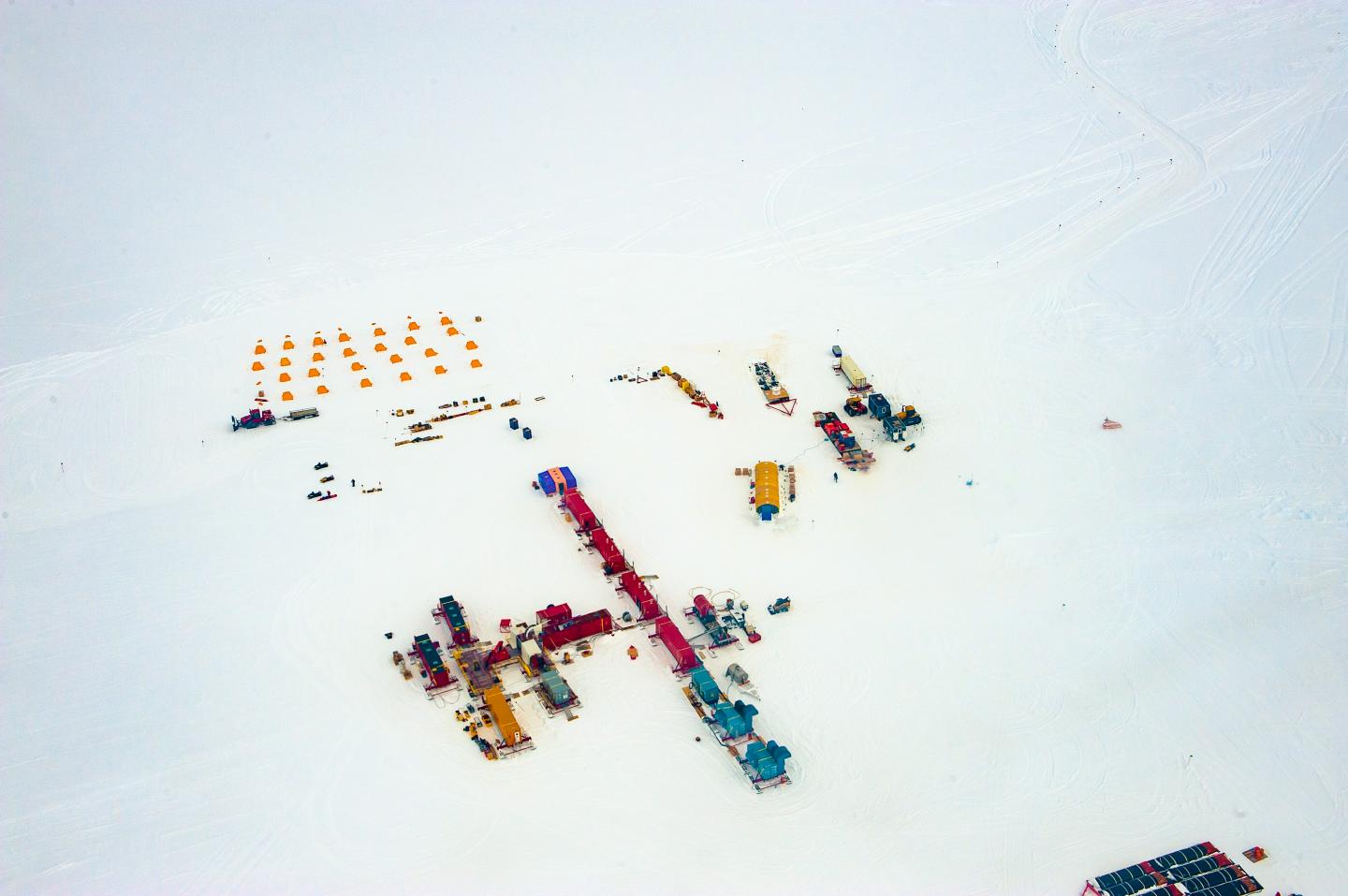 image: The camp above Whillans Subglacial Lake sits 800 meters above the water.