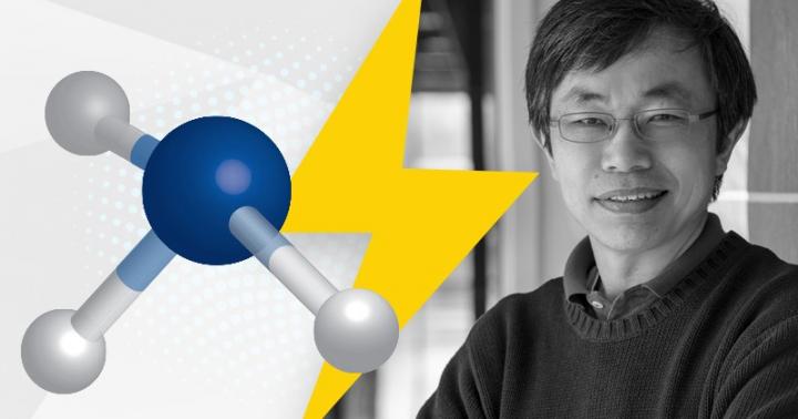 image: Traditional fuel cell research involves hydrogen fuel cells, but UD researchers are engineering fuel cells that utilize ammonia, the molecule pictured above, instead.