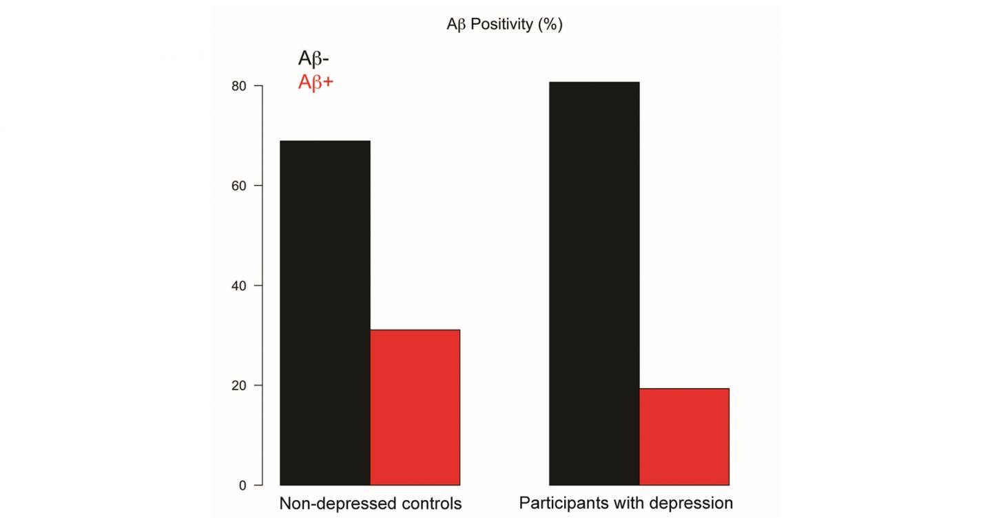 Significant amyloid protein deposits were detected in just 19 percent of participants with depression compared with 31 percent of control subjects.