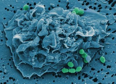 A scavenger cell of the immune system ingests bacteria (shown in green). During an influenza infection, the macrophages appetite is curbed.
