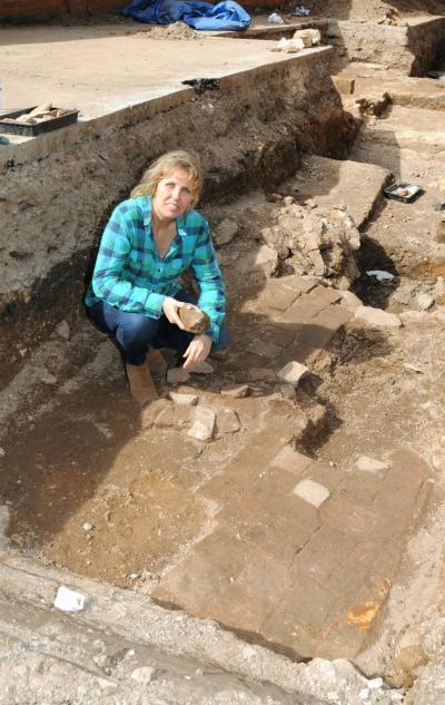 "The tiles were also extremely worn and of many different sizes. Although the date at which the paving was laid has yet to be confirmed, we suspect that it relates to the period of Herrick's mansion. Interestingly, the 18th century map of Leicester shows a formal garden with a series of paths leading to a central point.