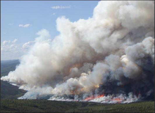 The second feature is the new occurrence of fire in fire-resistant landscapes. As tundra in the far north becomes hotter and drier under the influence of a warmer climate, vegetation types not typically thought of as fuels are starting to catch fire: dwarf shrubs, sedges, grass, moss, even surface peats. Wet landscapes like bogs, fens, and marshes are also becoming vulnerable to burning.