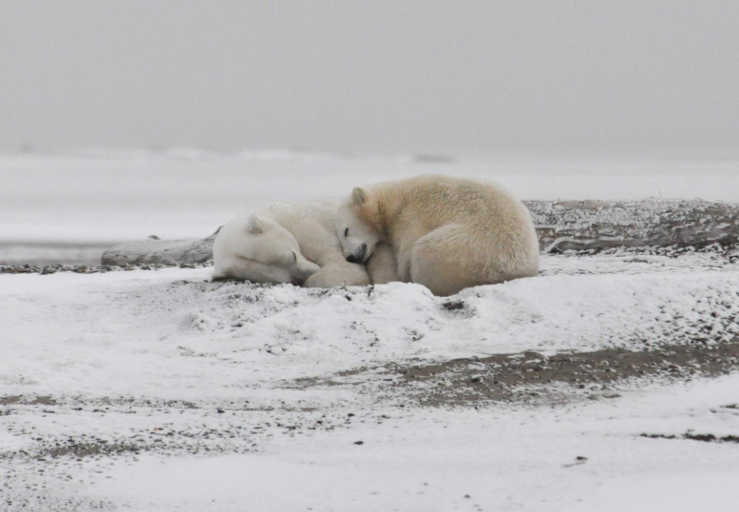 image: Polar bears sleep on the beach in the Arctic National Wildlife Refuge in early September waiting for ice to form on the Arctic Ocean.