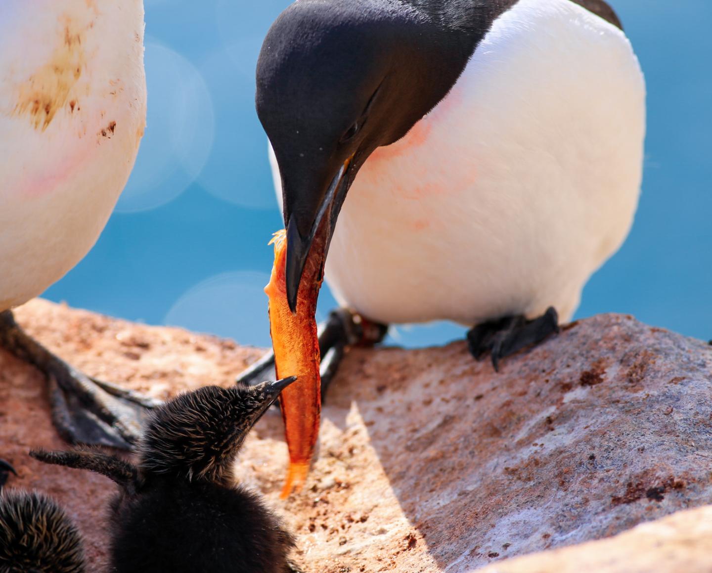 image: Thick-billed murre feeding its young.